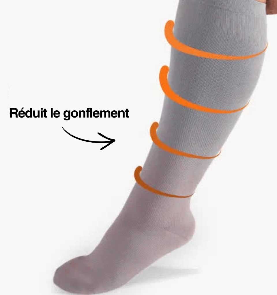 Compression graduée : stimule la circulation et soulage les jambes lourdes et fatiguées.